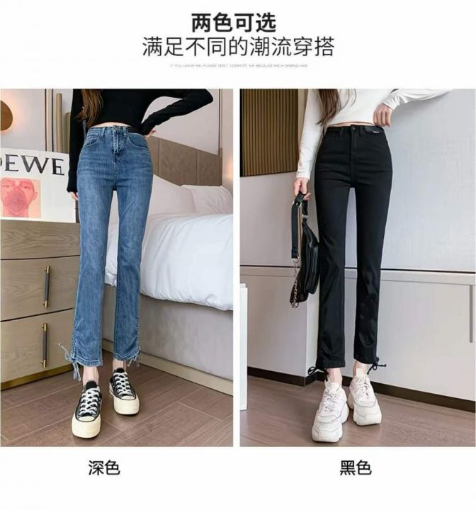 4820条新款黑色微喇裤女春秋夏季小个子高腰显瘦弹力九分开叉喇叭裤 ,单款...