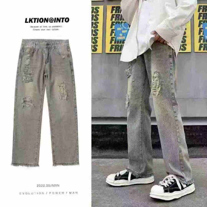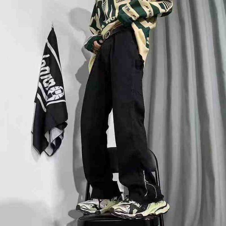 全清9.8春秋直筒毛边牛仔裤男裤脚拉链日系复古高街潮牌ins百搭工装牛仔...