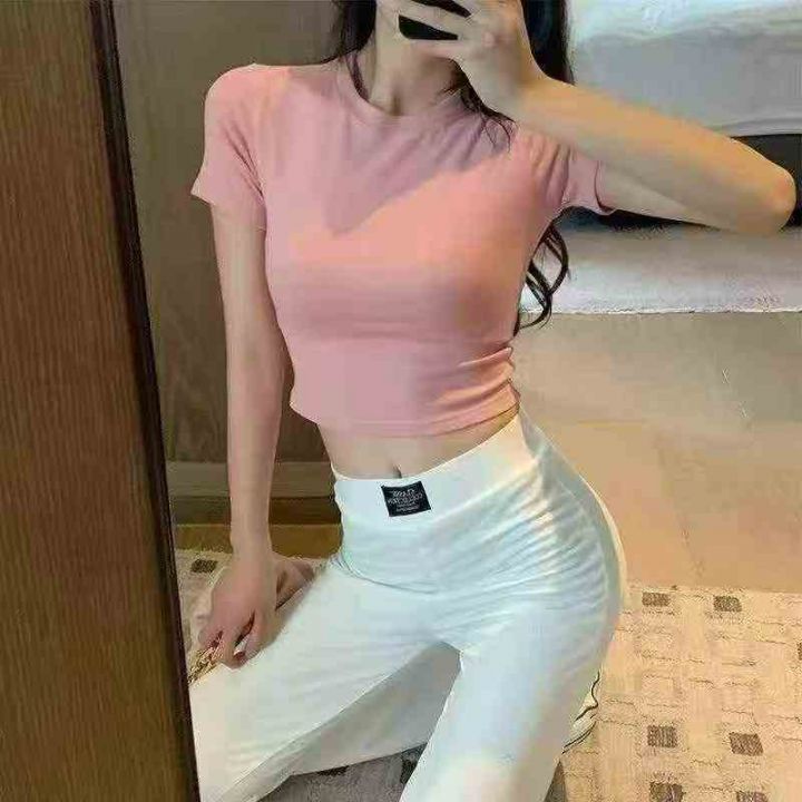 2.8清787件女辣妹 靓妹高腰露脐修身气质短款T恤夏季百搭修身辣妹纯色上衣 ...