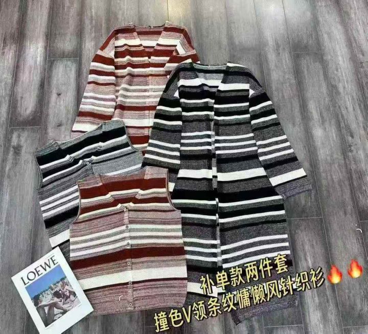捡漏款,秋冬新款网红赫本风大长款条纹针织毛衣开衫,套装有20套左右,单件...