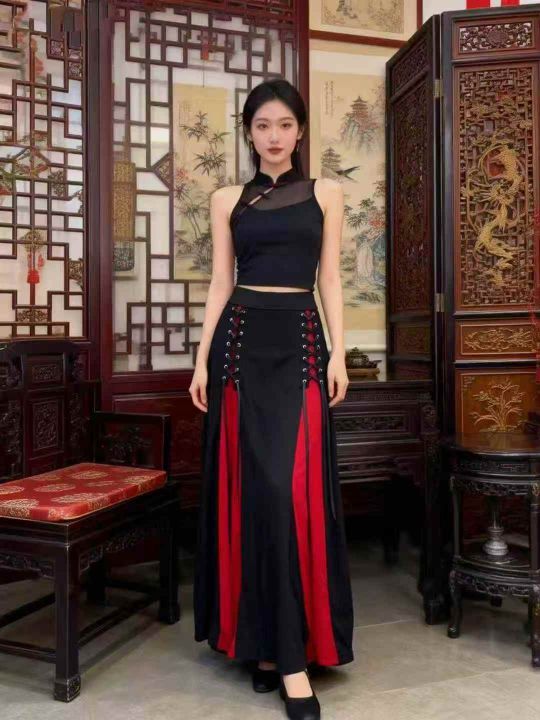 ① 新中式复古拼接下摆松紧腰半裙!两个整款,独立包装,码数S-3XL,数量30...