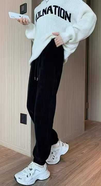 11.8元清高品质雪尼尔休闲宽松束脚加绒加厚裤,整款两色,裤头内里包边,做...