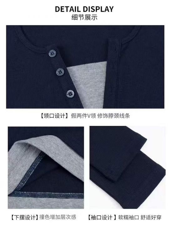 春季新款韩版正肩假两件V领修身显瘦设计感长袖上衣,独立包装,码数M--XL码...
