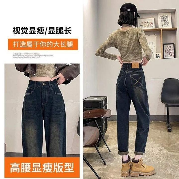 春夏季新款网红复古半松紧腰微胖MM哈伦牛仔老爹裤,独立包装带吊牌,码数S-...