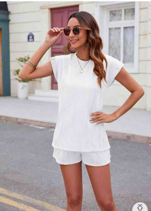 全清8.9V领女夏季肌理感 短袖短裤两件套装 宽松百搭潮 独立包装,码数S-XL...