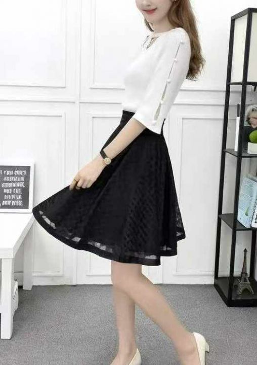 夏季新款女装防走光高腰百搭A字网纱蕾丝半身蓬蓬裙,独立包装,白色黑色为...