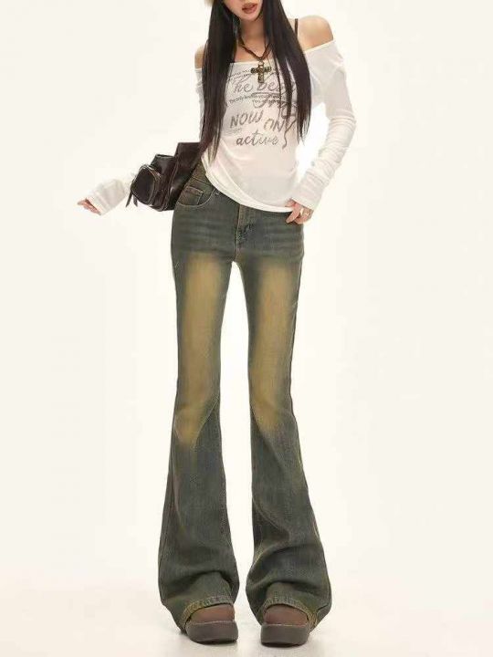 12.8清工厂回收1300条出口原单高品质网红复古洗水棉弹力牛仔微喇裤,码数1-...