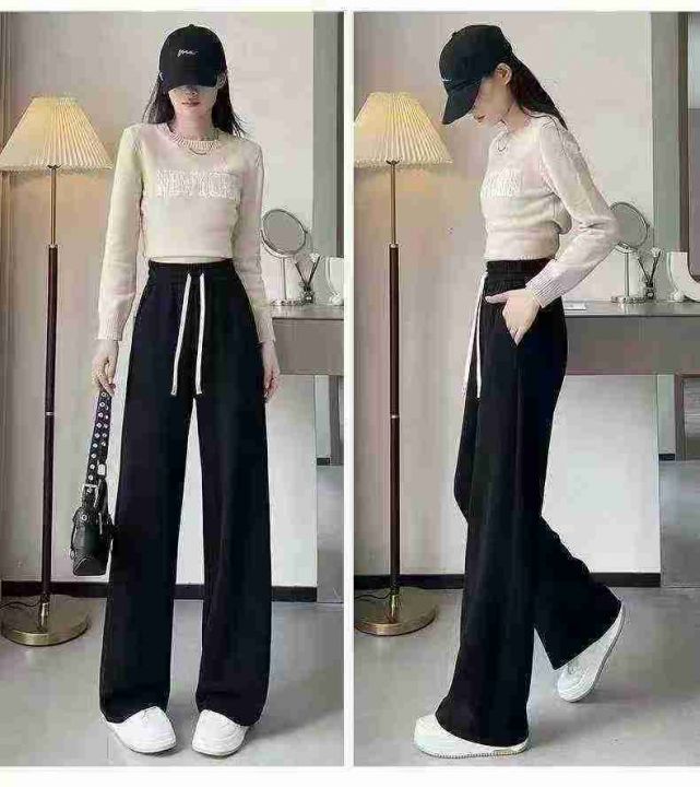 韩版简约女士雪尼尔灯芯绒垂感阔腿抽绳休闲直筒裤.图片款两种面料M-XL面料...