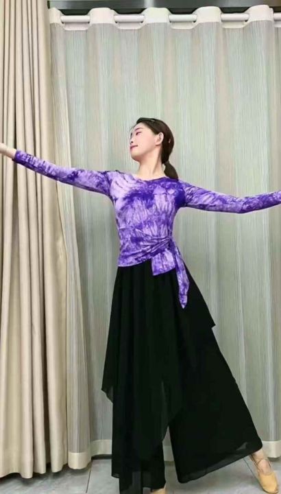 全清5.92025新款舞蹈练功服上衣长袖扎染系带收腰显瘦国风古典现代舞服装,2...