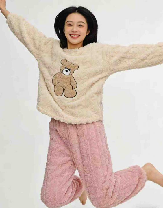 13.8清天猫仓回收550套秋冬热卖珊瑚绒小熊家居服套装,码数S-XL。宽松大版...