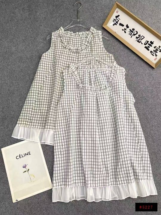 韩系复古无袖上衣170件6.9,格子花领口,拼接设计,码数2-3码,独立包装@_@...