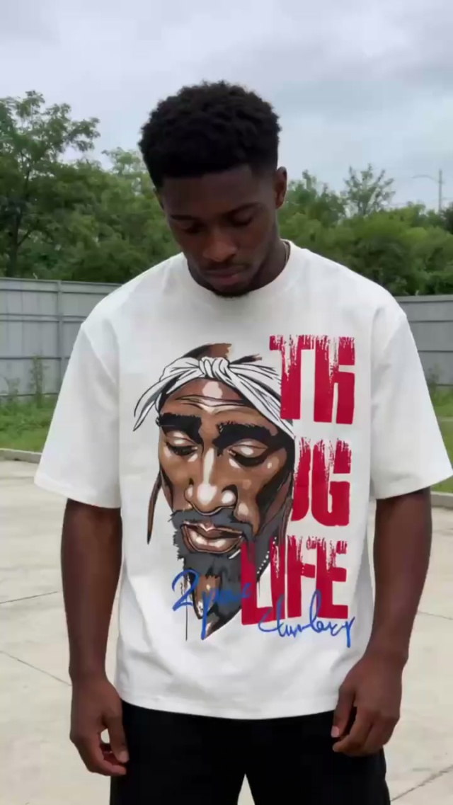 潮牌男士重磅高克重纯棉T桖大面积印花图案3000件,独立拉链袋包装,均码大...