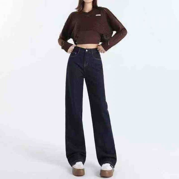 秋冬新款高品质女装复古蓝直筒阔腿牛仔长裤,独立包装带吊牌带防伪扣,码数...