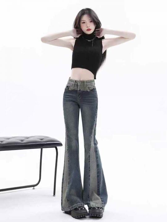 秋冬新款高品质复古网红设计款阔腿微喇叭牛仔长裤,独立包装带吊牌带防伪扣...