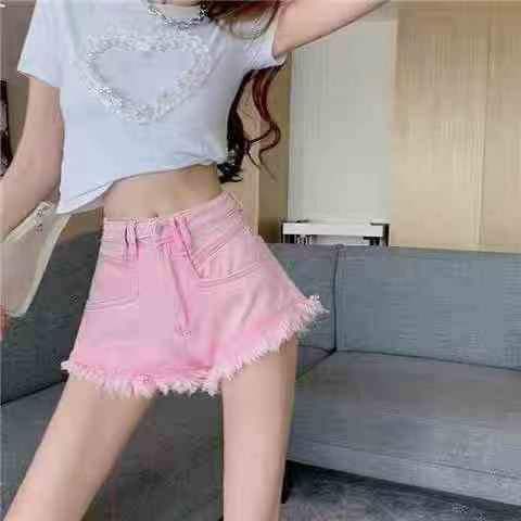 ☕️流苏毛边设计感牛仔短裤女夏季高腰宽松显瘦韩版A字短热裤子348条全清9....