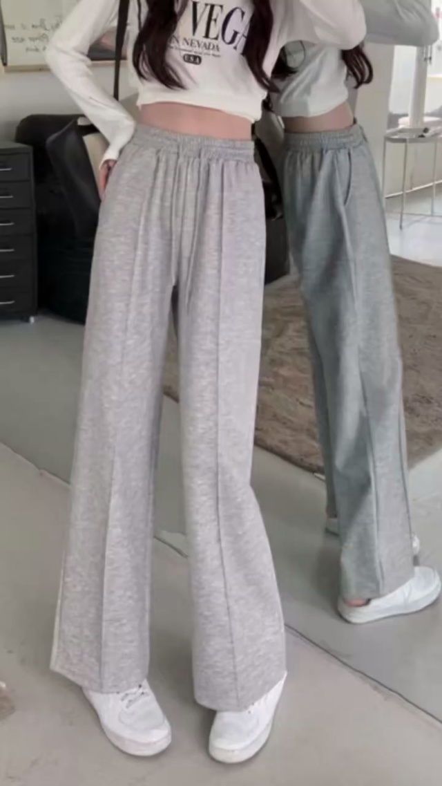 冰丝阔腿休闲裤小个子夏季高腰宽松垂感显高直筒拖地长裤小码女装码数:M-3...