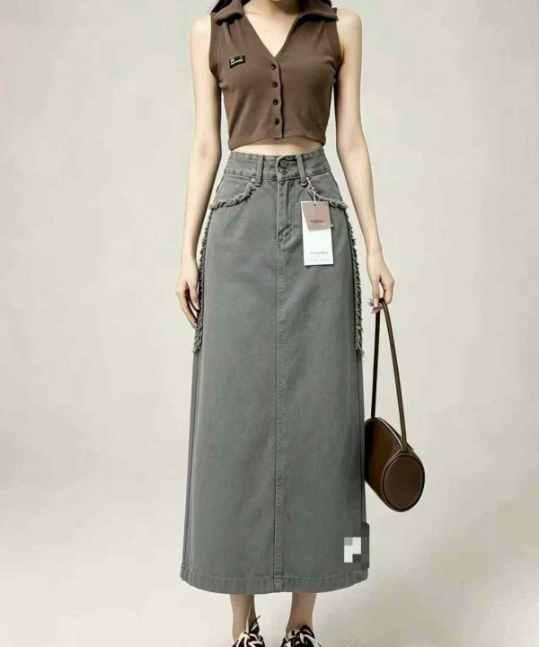 大整款牛仔长裙1710条全清11.8元,分货12.8元,高腰毛边牛仔半身裙女春夏季...
