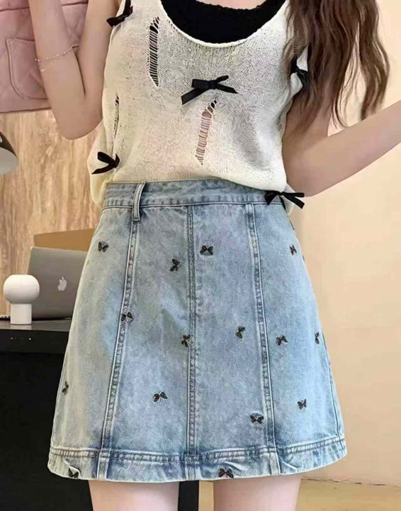 重工蝴蝶刺绣牛仔短裙女高腰设计a字半身裙1109条全清7.8元,分货8.8元,码...