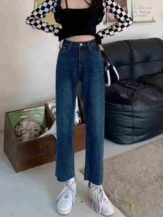 直筒牛仔裤女春秋时尚新款小个子高腰显瘦开叉烟管裤子潮260件,独立包装带...