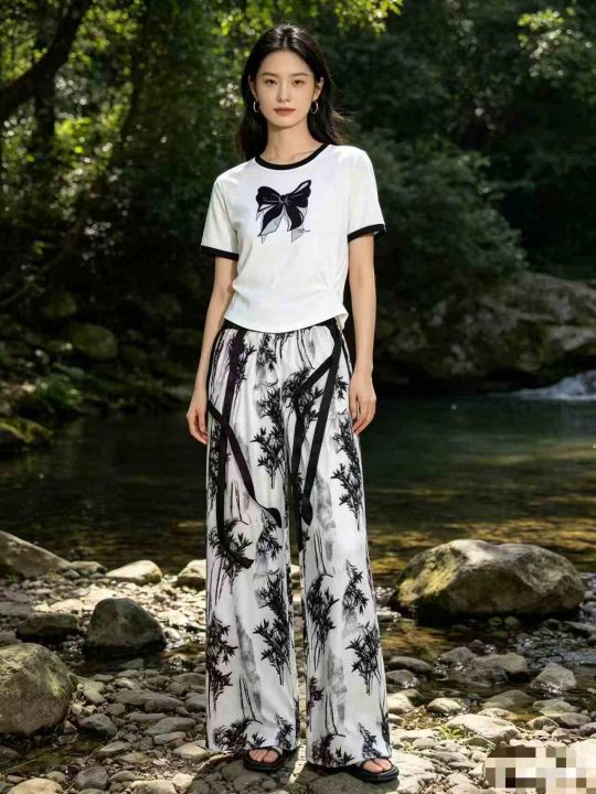 时尚洋气水墨画国风简约休闲阔腿女士套装.单款单色4个码独立包装508套全清...
