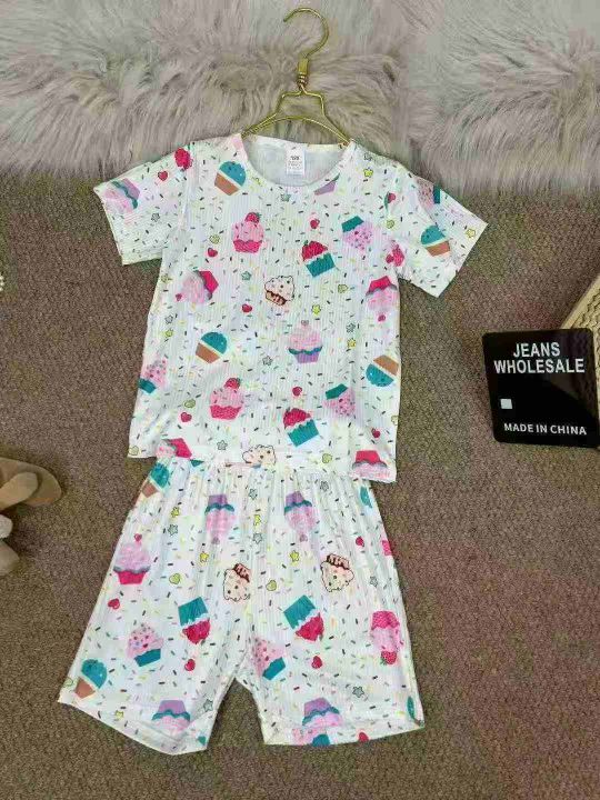 莫代尔棉儿童家居套装短袖,数量212套,单款单粉色,统一面料,尺寸90~120...