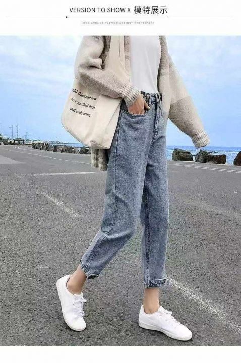 春秋新款宽松高腰显瘦萝卜牛仔老爹裤,独立包装带吊牌,码数S-XL码,2800件...