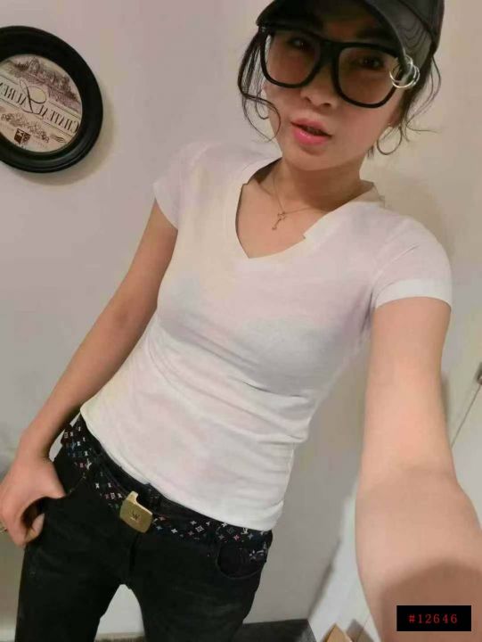 [月亮]:6.5清1240件[月亮]:韩系褶皱肌理感V领正肩T恤[月亮]:135码 独立...