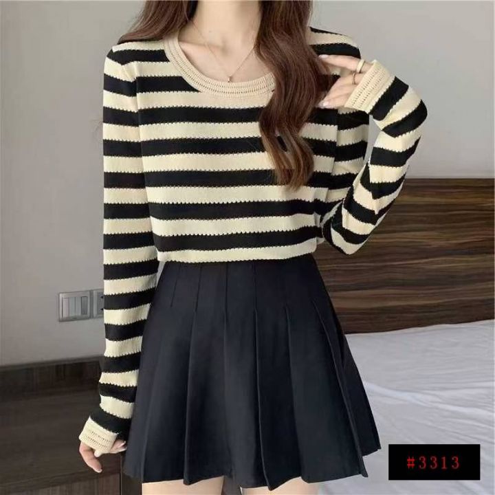 春秋款新品撞色条纹宽松正肩长袖针织衫,独立包装,均码面料柔软舒适,1020...