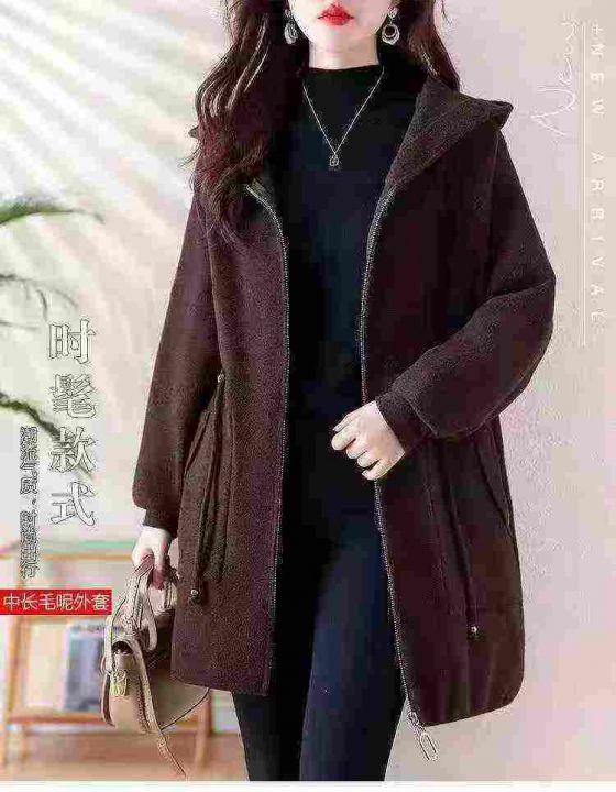 全清价9.9高级感连帽休闲女秋冬宽松呢子抽绳收腰拉链中长款大衣外套,独立...