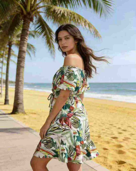 6.9清电商仓回收164件碎花度假风一字肩连衣裙,码数S-XL。裙子带内衬,质量...