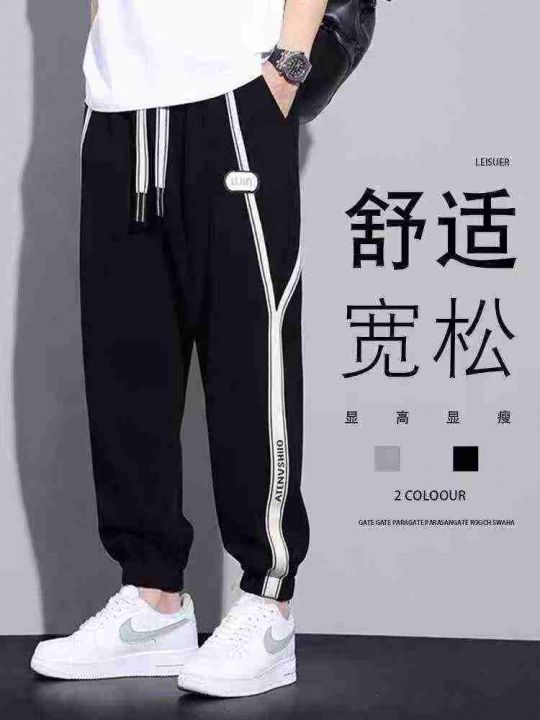 ☕️男士冰丝休闲裤子美式潮牌束脚运动卫裤 100条全清8.8元,码数M到5XL,...