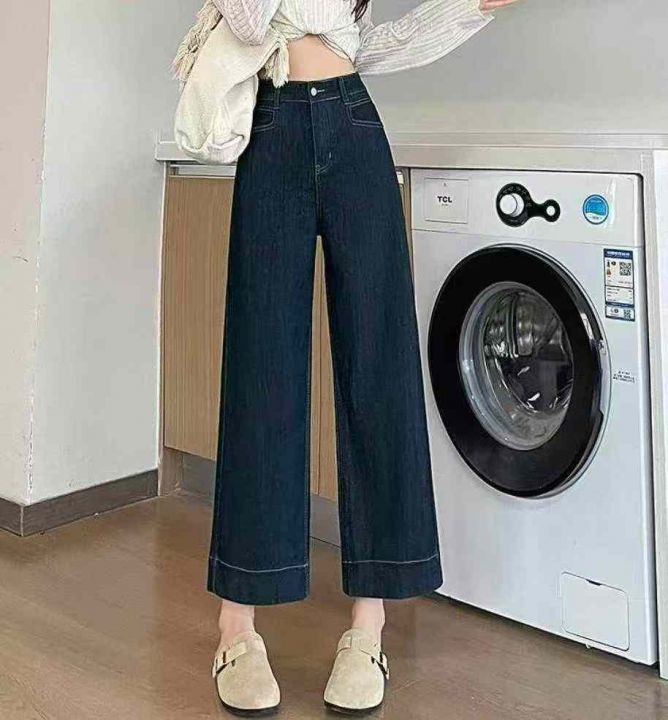 春秋新款梨形身材宽松高腰显瘦直筒阔腿9分牛仔裤,独立包装带吊牌,码数S- ...