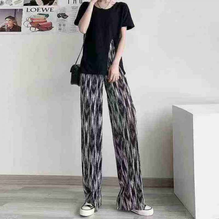 冰丝阔腿裤女夏薄款印花扎染高腰垂感宽松直筒休闲拖地裤160件,独立拉链袋...