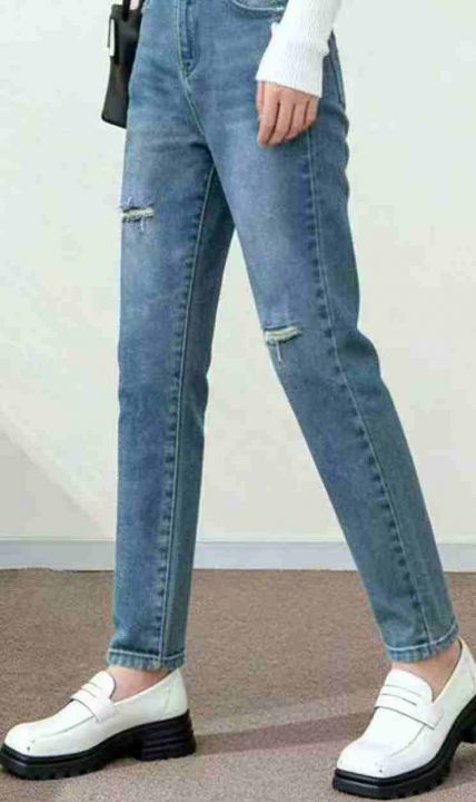 春秋新款破洞设计款高弹力老爹哈伦牛仔裤,独立包装带腰卡,码数27-32码, ...