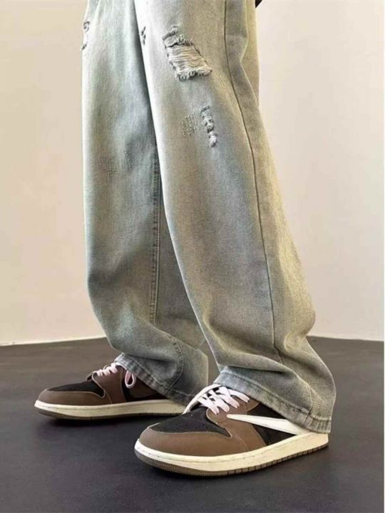 春秋新款破洞设计款高弹力老爹哈伦牛仔裤,独立包装带腰卡,码数27-32码, ...