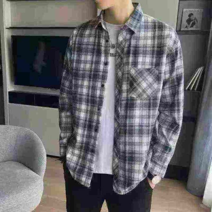 全清5.8格子长袖衬衫男士春秋季新款潮牌时尚宽松休闲衬衣外套,独立包装, ...