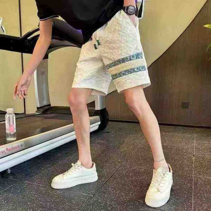 7.8清1072件痞帅高级感男士休闲宽松夏季薄款提花中裤五分裤!单款两色~黑...