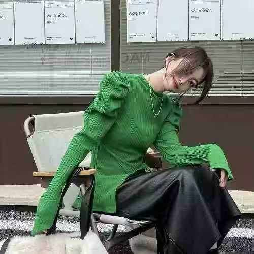 清7.8秋冬新款洋气女内搭设计感小众不规则开叉长袖别致上衣,数量40件,码...