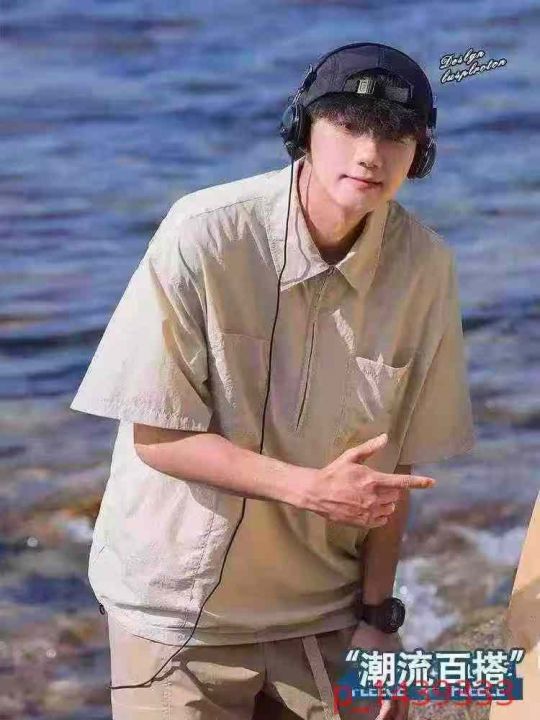 全清价6.8元捡漏100件日系复古拉链潮牌翻领短袖t恤潮流宽松百搭工装衬衣,...