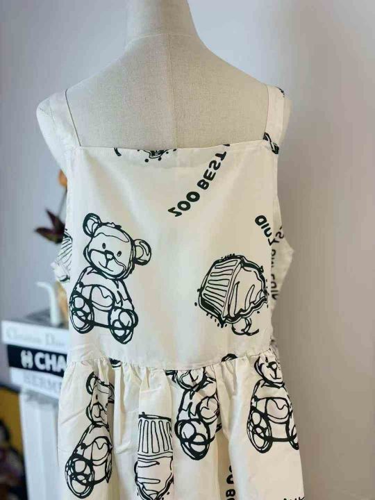 260件左右卡通小熊印花学院风背带连衣裙女中长款宽松吊带裙工装A字裙,品质...