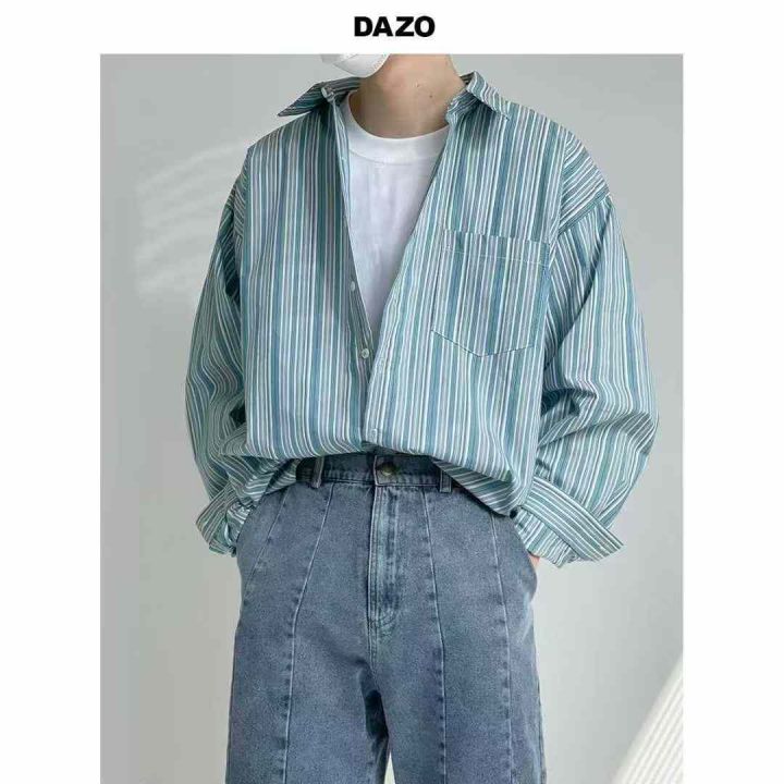全清价6.5元捡漏140件条纹衬衣男女情侣长袖韩版百搭宽松学生痞帅个性衬衫,...