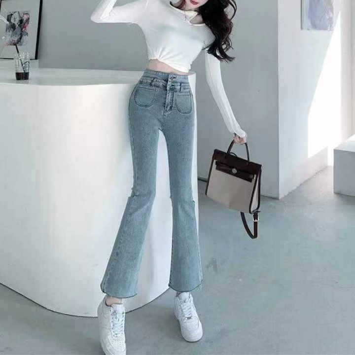 早秋季新品高弹力女装洗水棉毛边微喇叭牛仔裤,独立包装带腰卡,码数S-2XL...