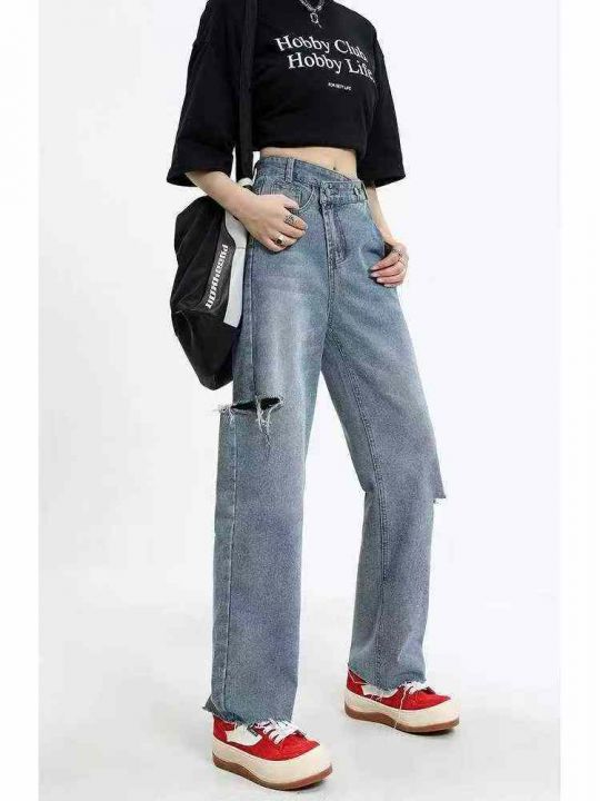 春夏季新款网红复古破洞设计款牛仔毛边直筒裤,独立包装带腰卡,码数XS-XL...