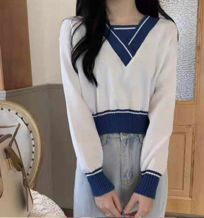 捡漏款,春秋新款韩系撞色V领针织套头毛衣,独立包装,均码面料柔软舒适弹...