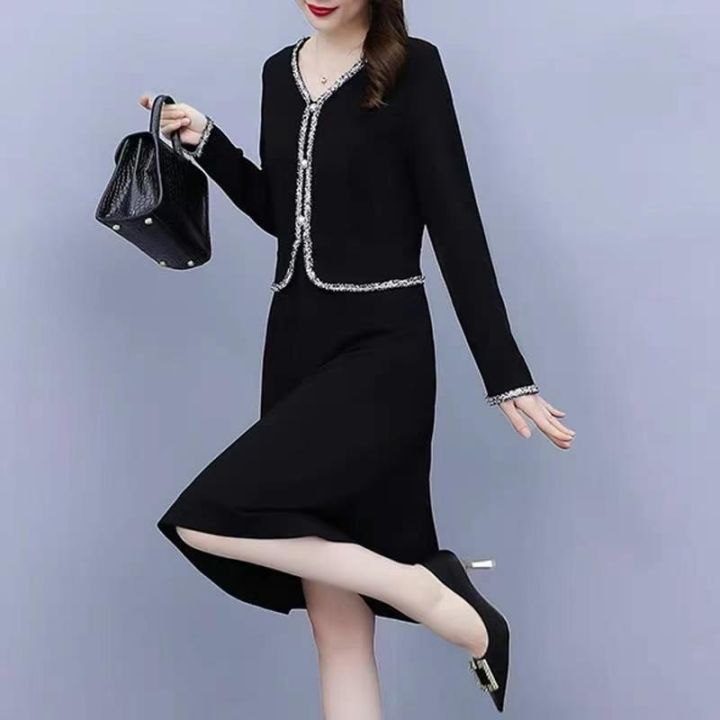 ️全清9.9 春秋新款高端气质名媛V领女装连衣裙,显瘦假两件连衣裙轻奢气...