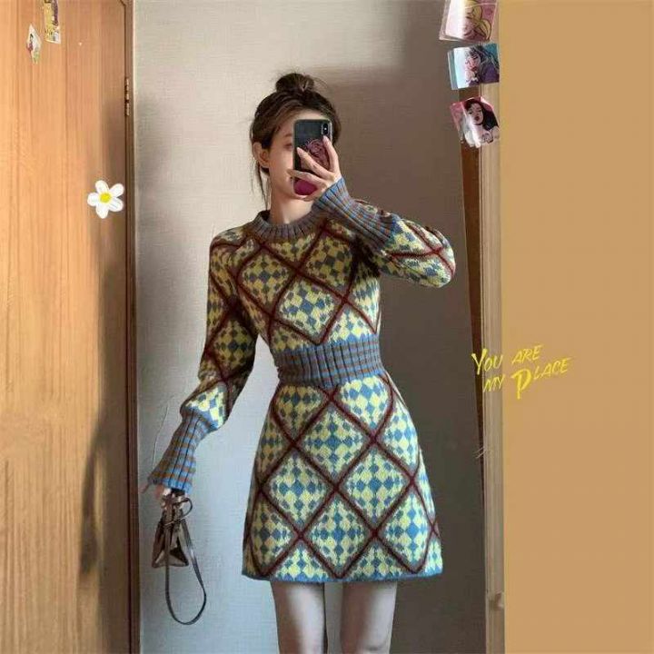 秋冬新款小香风提花北极绒毛衣连衣裙,独立包装,均码面料软糯厚实,296件...