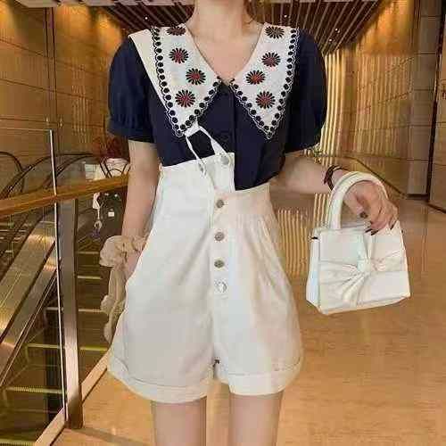 ☕️法式设计感绣花娃娃领泡泡袖小众宽松短袖衬衫女2060件全清7.8元,分货8...