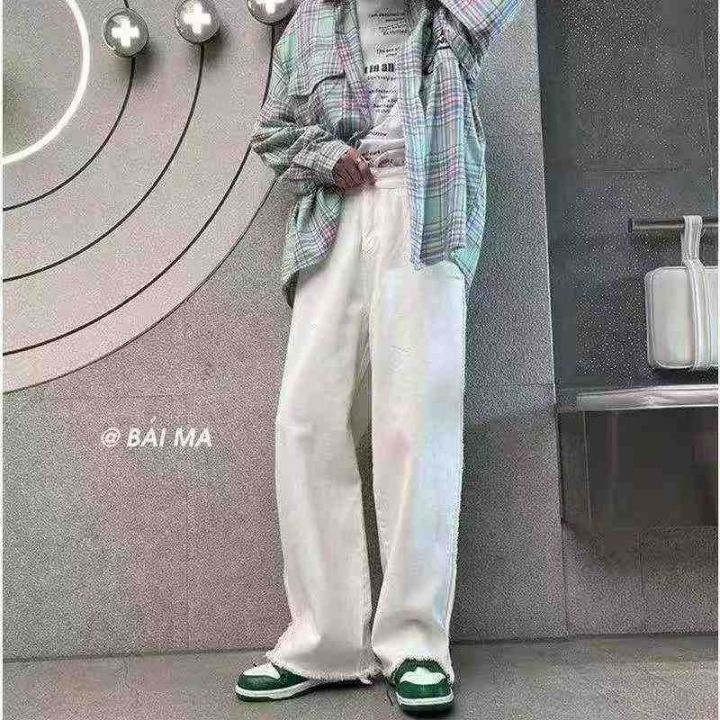 春秋新款网红美式复古水波纹渐变色刺绣毛边微喇叭男女同款宽松牛仔裤,独立...
