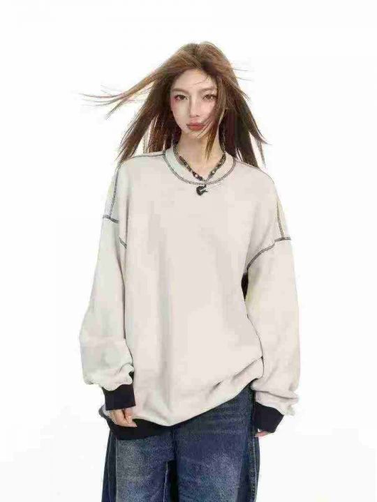 ☕️纯棉毛圈卫衣美式复古圆领拼接撞色插肩卫衣女春秋款上衣287件全清8.8元...