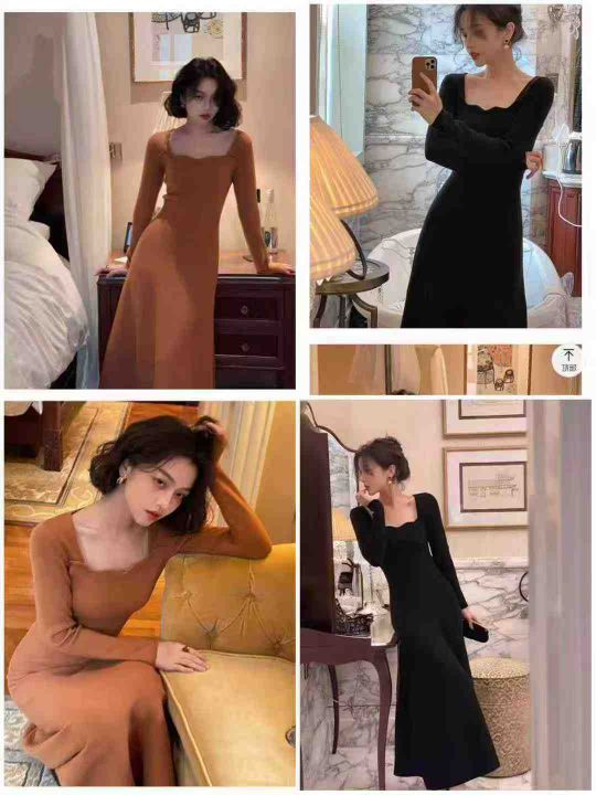 秋冬新款法式复古气质女神范高级感轻奢名媛弹力修身显瘦毛衣连衣裙,独立包...